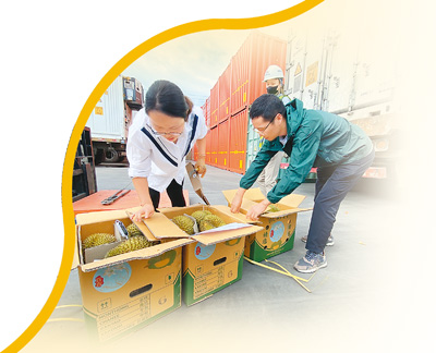 “針對(duì)水果等生鮮農(nóng)產(chǎn)品特點(diǎn),我們采取7×24小時(shí)預(yù)約通關(guān),設(shè)置農(nóng)食產(chǎn)品專用窗口,優(yōu)先辦理鮮活易腐農(nóng)產(chǎn)品接單、放行業(yè)務(wù),并采取即到即檢即放模式,確保進(jìn)口水果通關(guān)零延遲。”勐臘海關(guān)關(guān)長(zhǎng)韓斌說(shuō)。