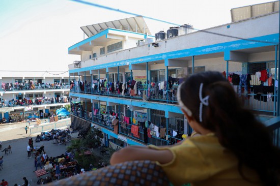 10月15日,在加沙地帶南部城市汗尤尼斯,流離失所者暫時(shí)居住在當(dāng)?shù)匾凰鶎W(xué)校里。新華社發(fā)(里澤克·阿卜杜勒賈瓦德攝)