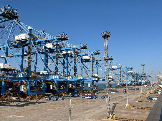 10月16日,2023“一帶一路”媒體合作論壇歐亞主流媒體考察團來到山東省青島市。走進山東港口青島港,高度軌道吊在集裝箱堆場往來穿梭,自動導引車在碼頭上快速行進,在智能管控系統A-TOS指揮下的全自動化集裝箱碼頭一片繁忙景象。