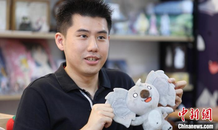 6月15日,創(chuàng)業(yè)臺(tái)青吳偉誠展示公司設(shè)計(jì)的動(dòng)漫IP衍生品。中新社記者 張亨偉 攝