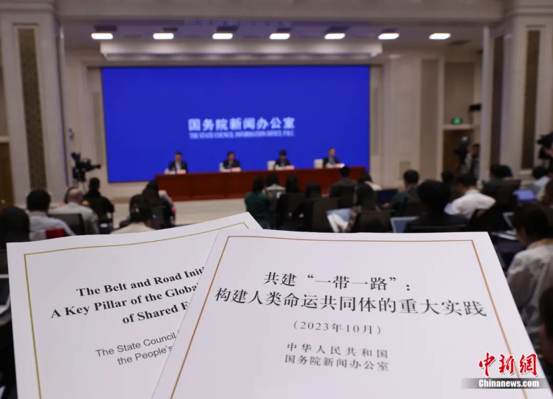2023年10月10日,中國國務(wù)院新聞辦公室在北京舉行新聞發(fā)布會(huì),發(fā)布《共建“一帶一路”:構(gòu)建人類命運(yùn)共同體的重大實(shí)踐》白皮書。楊可佳 攝