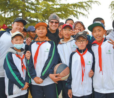 2023年5月,中國外文局語言顧問拉斐爾(中)在西藏拉薩與當(dāng)?shù)貙W(xué)生合影留念。