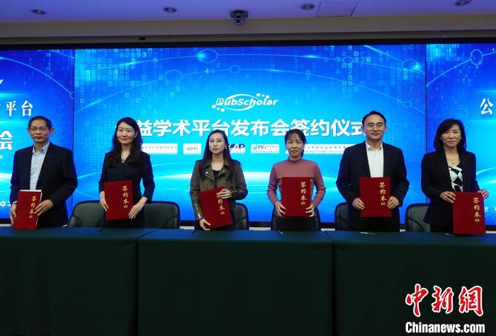11月1日,“PubScholar公益學(xué)術(shù)平臺(tái)”在中國(guó)科學(xué)院文獻(xiàn)情報(bào)中心正式發(fā)布,并在發(fā)布會(huì)上舉行相關(guān)合作簽約儀式。中新網(wǎng)記者 孫自法 攝