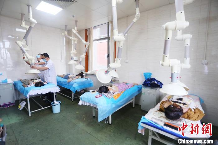 2021年8月19日,甘肅中醫(yī)藥大學附屬醫(yī)院鄭氏針灸科室內,醫(yī)師為患者做敦煌特色灸。(資料圖)高展 攝