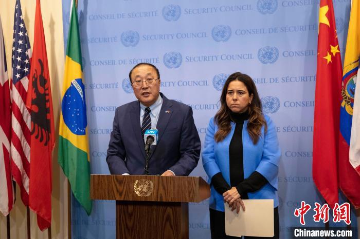 中新社聯(lián)合國(guó)11月6日電 (記者 王帆)應(yīng)中國(guó)和阿聯(lián)酋要求,聯(lián)合國(guó)安理會(huì)6日就巴以沖突局勢(shì)舉行緊急磋商,安理會(huì)本月輪值主席中國(guó)常駐聯(lián)合國(guó)代表張軍主持會(huì)議。會(huì)后,張軍同阿聯(lián)酋常駐聯(lián)合國(guó)代表努賽貝共同會(huì)見(jiàn)記者,就當(dāng)前巴以局勢(shì)發(fā)表談話。