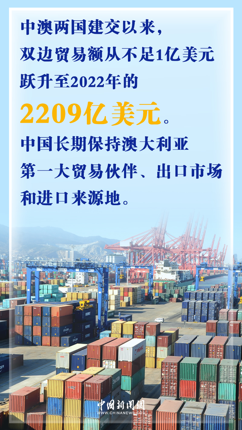 據(jù)中國駐澳大利亞大使館網(wǎng)站數(shù)據(jù),中澳兩國建交50年來,雙邊貿(mào)易額從當(dāng)時(shí)不足1億美元,躍升至2022年的2209億美元。中國長(zhǎng)期保持澳大利亞第一大貿(mào)易伙伴、出口市場(chǎng)和進(jìn)口來源地的地位。與此同時(shí),越來越多的澳大利亞優(yōu)質(zhì)農(nóng)產(chǎn)品走進(jìn)中國家庭,豐富了中國消費(fèi)者的選擇。