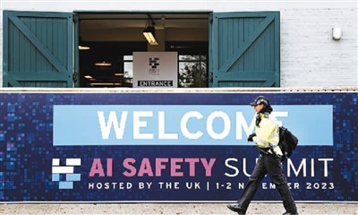 在英國布萊奇利園,警察在首屆人工智能安全峰會(huì)上執(zhí)勤。