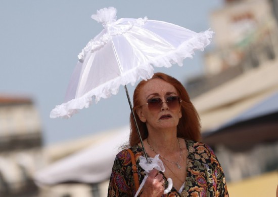 7月19日,在法國(guó)南部城市蒙彼利埃,一名女子用遮陽(yáng)傘遮陽(yáng)。新華社記者高靜攝