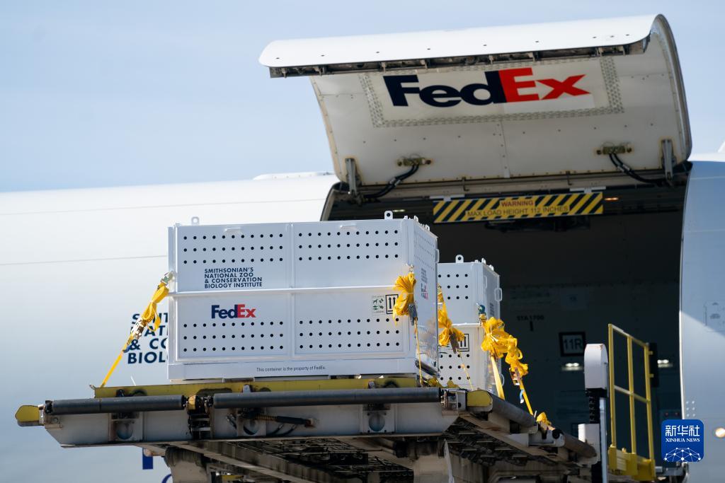 當(dāng)天上午,華盛頓史密森學(xué)會(huì)國家動(dòng)物園工作人員將三只裝有大熊貓的特制“旅行包廂”、220磅(約合100公斤)竹子、飲用水及相關(guān)物資運(yùn)上卡車。隨后,載有“美香”“添添”和“小奇跡”的車隊(duì)駛離動(dòng)物園,前往華盛頓杜勒斯國際機(jī)場。