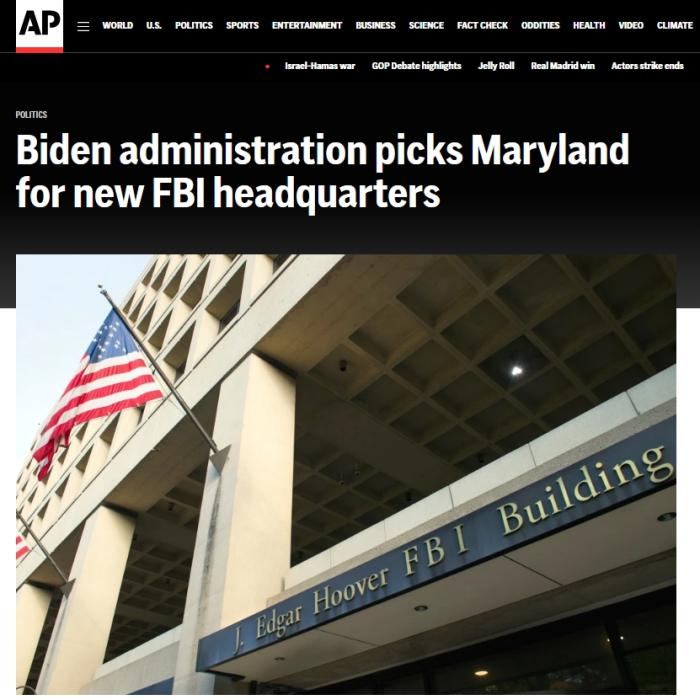 中新網11月9日電 綜合美聯社、《華盛頓郵報》報道,當地時間8日,美國聯邦總務管理局(GSA)證實,美國政府已選擇在馬里蘭州設立聯邦調查局(FBI)新總部。