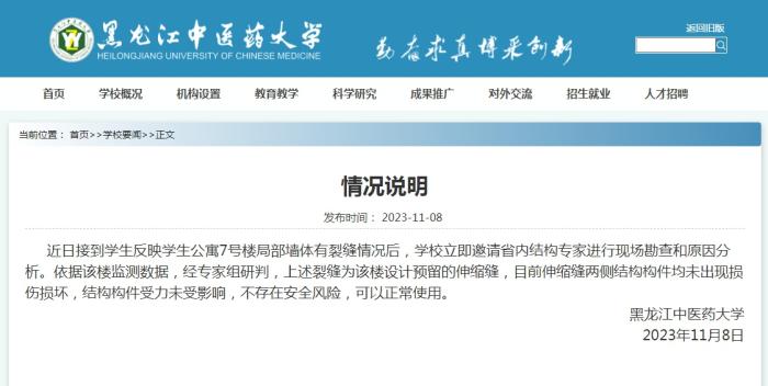 黑龍江一大學(xué)學(xué)生公寓墻體開裂?官方:不存在安全風(fēng)險(xiǎn)
