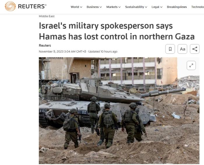 中新網(wǎng)11月9日電 據(jù)路透社報道,當(dāng)?shù)貢r間8日,以色列軍方發(fā)言人丹尼爾·哈加里(Daniel Hagari)表示,隨著數(shù)千居民向南遷移,巴勒斯坦伊斯蘭抵抗運動(哈馬斯)已經(jīng)失去了對加沙地帶北部的控制。