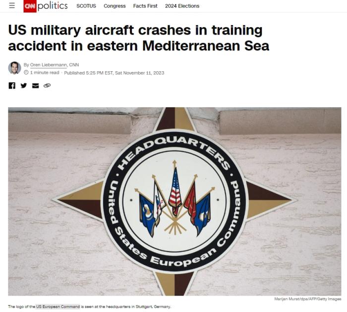 美國(guó)一軍機(jī)在地中海東部墜毀 “未發(fā)現(xiàn)敵對(duì)活動(dòng)跡象”