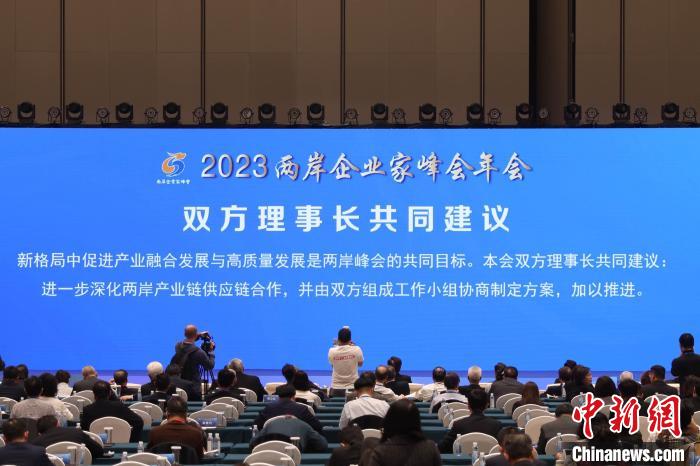 兩岸企業(yè)家峰會大陸方面秘書長林軍宣讀共同建議。林軍表示,新格局中促進產(chǎn)業(yè)融合發(fā)展與高質量發(fā)展是兩岸峰會的共同目標。本會雙方理事長共同建議:進一步深化兩岸產(chǎn)業(yè)鏈供應鏈合作,并由雙方組成工作小組協(xié)商制定方案,加以推進。