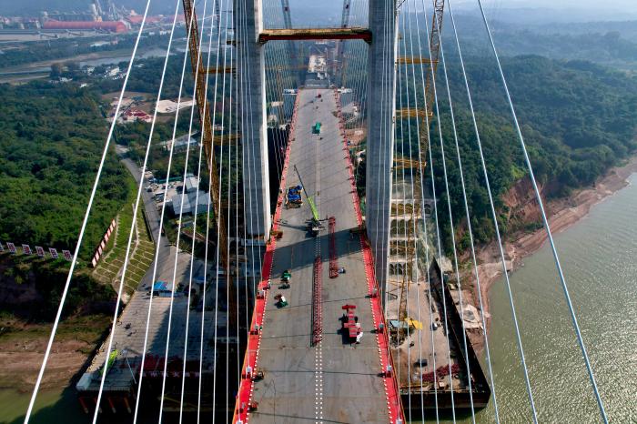 大橋原計劃2025年12月底建成,目前已提前至同年6月竣工。張馳表示,工期縮短得益于大家的創(chuàng)新精神,任何一個小的技術(shù)改進都會帶來整體工期的縮短。“‘基建狂魔’(的名號)是干出來的,”他打趣地說道。