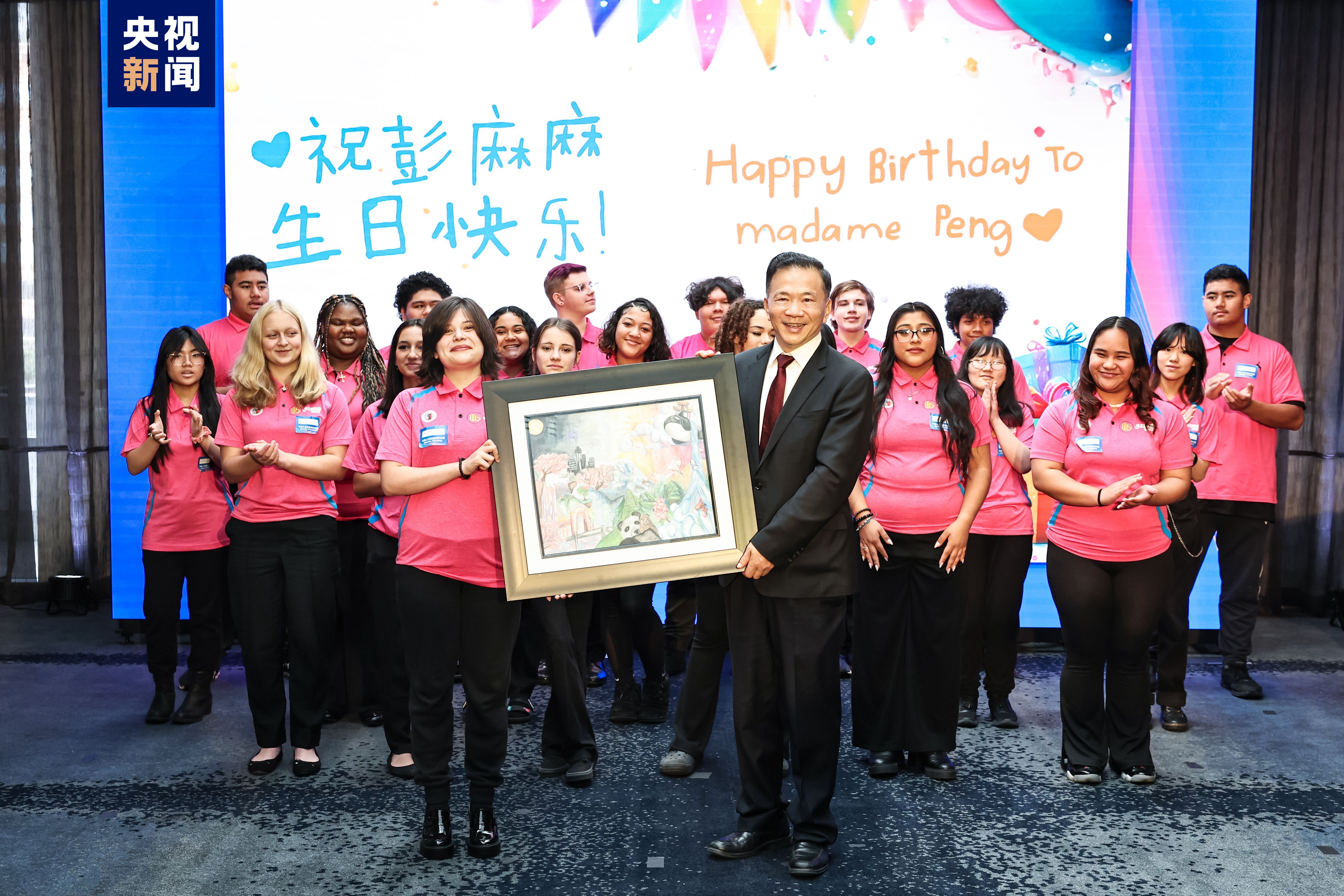 活動(dòng)現(xiàn)場(chǎng),來自華盛頓州林肯中學(xué)的合唱團(tuán)演唱了中文歌曲《在希望的田野上》和英文歌曲《伴我同行》,祝愿中美友誼的紐帶更加牢固,煥發(fā)新的活力。同學(xué)們還為習(xí)近平主席和夫人彭麗媛精心準(zhǔn)備了手繪畫作《一起向未來》,并用精美的生日賀卡和《生日快樂》歌親切地為“彭麻麻”送上了生日祝福??偱_(tái)臺(tái)長(zhǎng)代為接收。