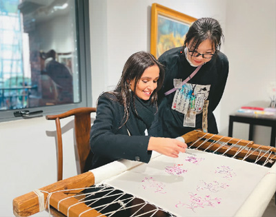法方嘉賓在體驗蘇繡。