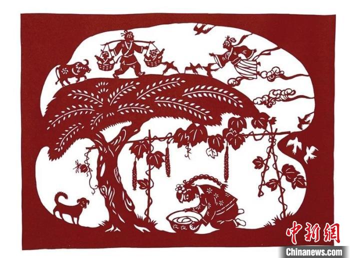 醫(yī)巫閭山滿族剪紙作品《乞巧節(jié)》。圖片來源:臺灣《聯(lián)合報(bào)》