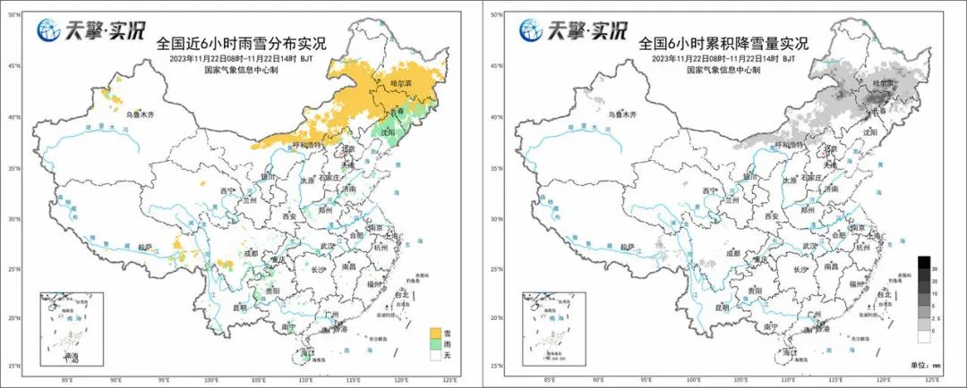 實況數(shù)據(jù)顯示,今天白天,內(nèi)蒙古中東部以及東北地區(qū)大部都出現(xiàn)了雨雪天氣,其中,內(nèi)蒙古中東部、黑龍江中南部一帶以降雪為主,吉林、遼寧等地以降雨為主;黑龍江最強降雪集中在哈爾濱,尚志6小時降雪量超10毫米,達(dá)到暴雪以上量級。