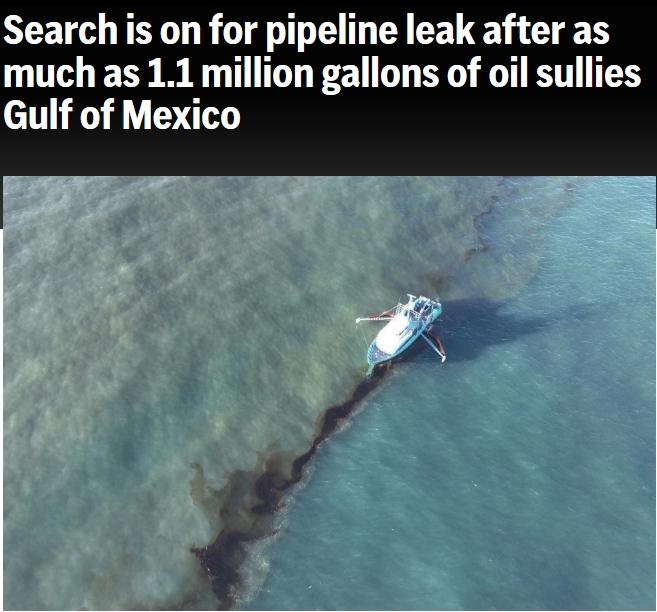 多達(dá)110萬(wàn)加侖!美國(guó)路易斯安那海岸輸油管道原油泄漏