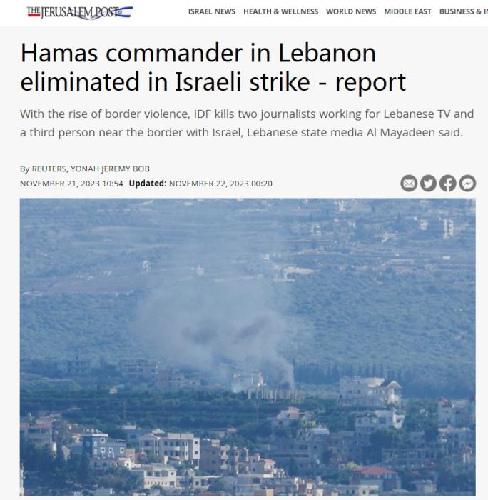 中新網(wǎng)11月23日電 據(jù)以色列《耶路撒冷郵報(bào)》報(bào)道,當(dāng)?shù)貢r(shí)間21日,在以色列對(duì)黎巴嫩進(jìn)行的空襲中,哈馬斯“卡桑旅”黎巴嫩分支副指揮官卡拉茲被炸身亡。
