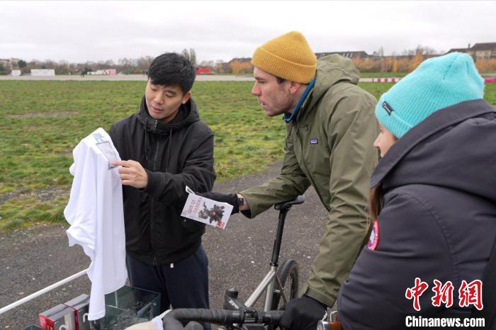 圖為選手展示其獲得“車騎將軍”主題系列T恤。德國(guó)漢文化藝術(shù)交流中心供圖