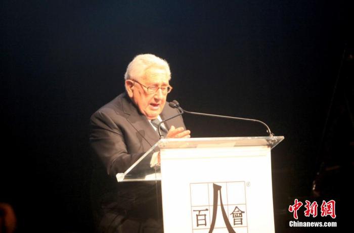 資料圖:美國前國務卿基辛格出席在紐約舉行的美國百人會成立25周年頒獎晚宴并發(fā)表演講。中新社發(fā) 阮煜琳 攝