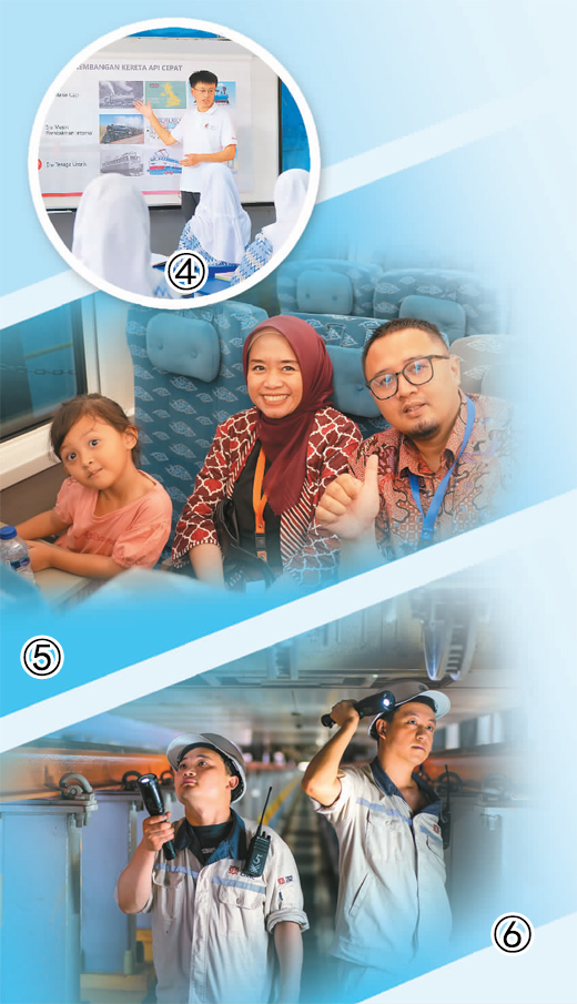 圖⑥:中國維保售后人員對雅萬高鐵列車進(jìn)行檢查維護(hù)。