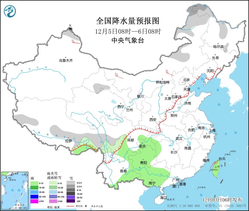 全國降水量預報圖(12月5日08時-6日08時)