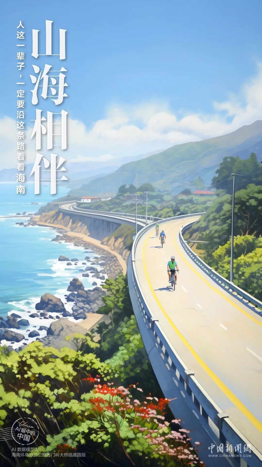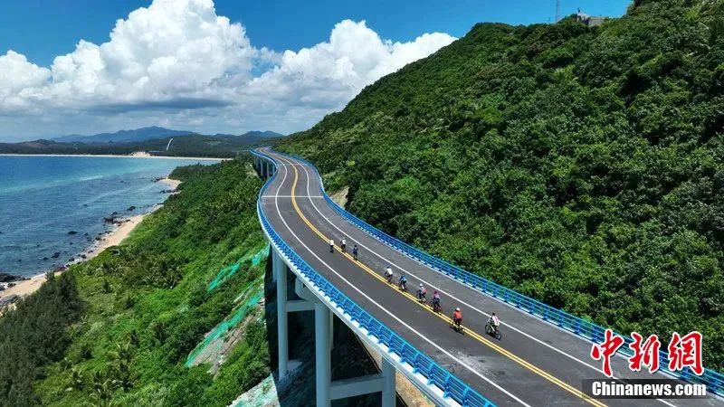 圖為海南環(huán)島旅游公路萬(wàn)門(mén)嶺大橋臨崖路段吸引游客騎行打卡。楊師忠 攝