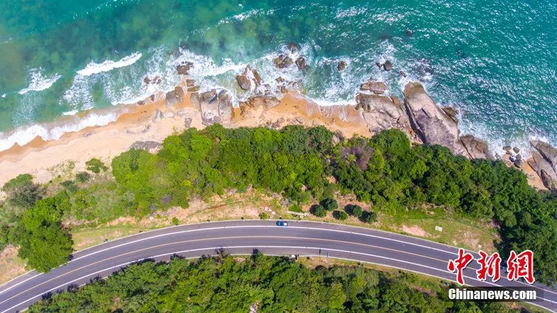 圖為航拍位于海南萬(wàn)寧的濱海旅游公路。駱云飛 攝
