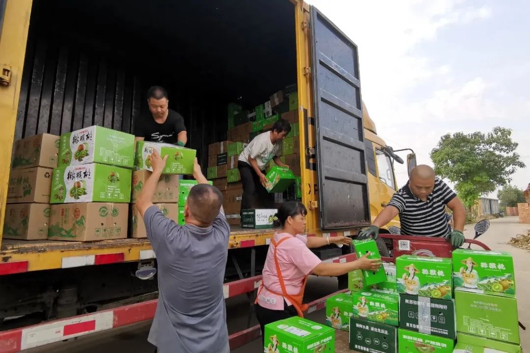 圖為工人們正在將獼猴桃裝車運輸。武功縣融媒體中心 供圖