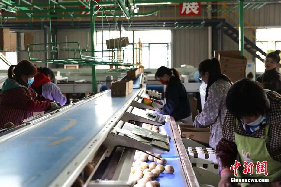 圖為工廠內(nèi)的獼猴桃裝箱流水線。石芙蓉 攝