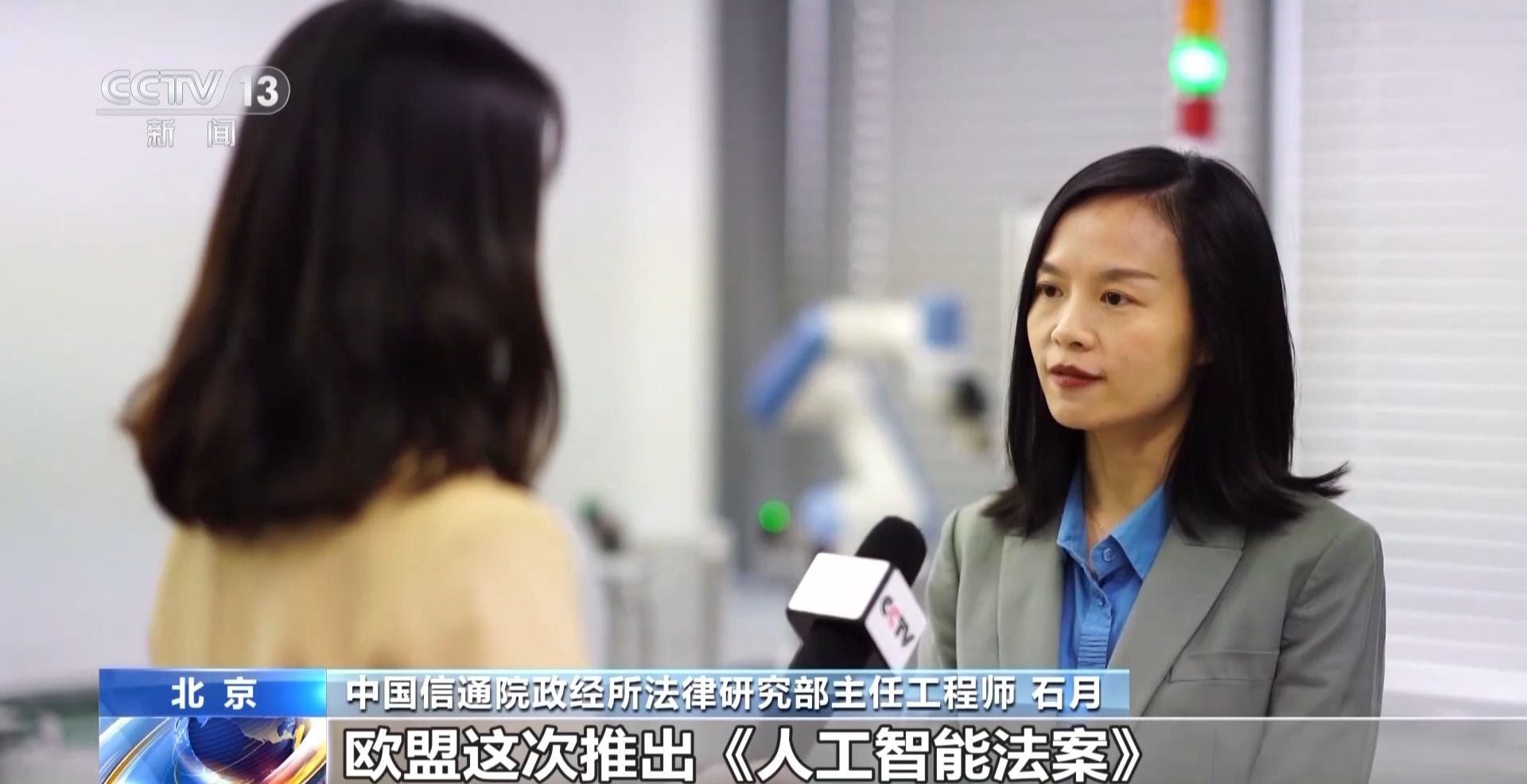 中國信通院政經所法律研究部主任工程師 石月:歐盟推出《人工智能法案》,很有可能成為全球首部高層級的關于人工智能的法律框架。希望在人工智能領域繼續(xù)維護它本土的數(shù)字主權、數(shù)字安全,提升在人工智能規(guī)則制定的國際話語權。