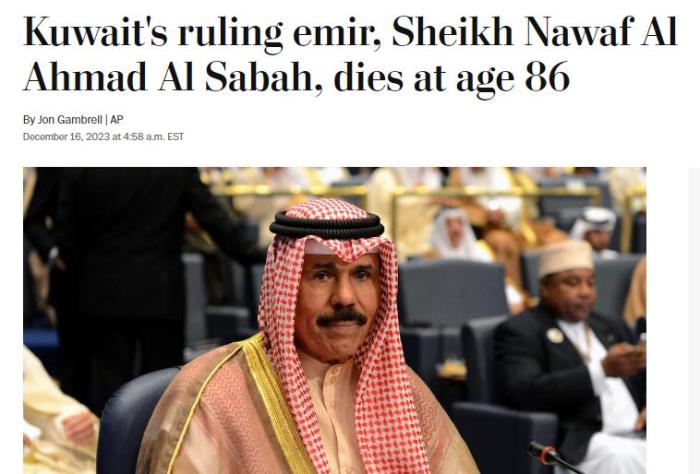 中新網12月16日電 據法新社最新消息,科威特埃米爾(國家元首)納瓦夫·艾哈邁德·賈比爾·薩巴赫去世,終年86歲。