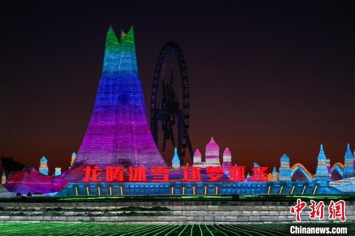 第二十五屆哈爾濱冰雪大世界主塔“冰雪之冠”景觀 趙宇航 攝