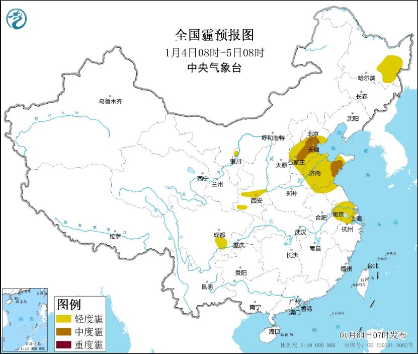 中央氣象臺今晨繼續(xù)發(fā)布大霧黃色預(yù)警:預(yù)計,今晨至上午,山東南部、安徽中北部、江蘇大部、湖北中部、湖南北部、江西東部、福建西部、四川盆地南部等地的部分地區(qū)有大霧,其中山東南部、江蘇南部、安徽中部、湖北中部、江西東部等地的部分地區(qū)有能見度低于500米的濃霧,局地有能見度低于200米的強(qiáng)濃霧。此外,今明兩天,華北南部、黃淮中東部、江淮等地擴(kuò)散條件較差,有輕至中度霾。