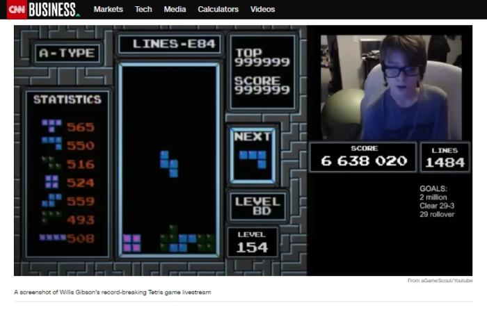 吉布森把自己的通關(guān)視頻上傳網(wǎng)絡(luò),表示自己“要昏過去了,感覺不到自己的手指了”。他認(rèn)為,“俄羅斯方塊”上手容易,但玩到高手級(jí)別很難。