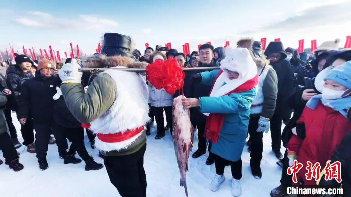 2023年12月29日,在吉林省鎮(zhèn)賚縣開幕的中國北方漁島冬捕漁獵文化暨冰雪旅游節(jié)上,一網(wǎng)出魚15萬斤,6條頭魚在拍賣中共拍出273.3328萬元,其中1號頭魚拍出99.9999萬元。