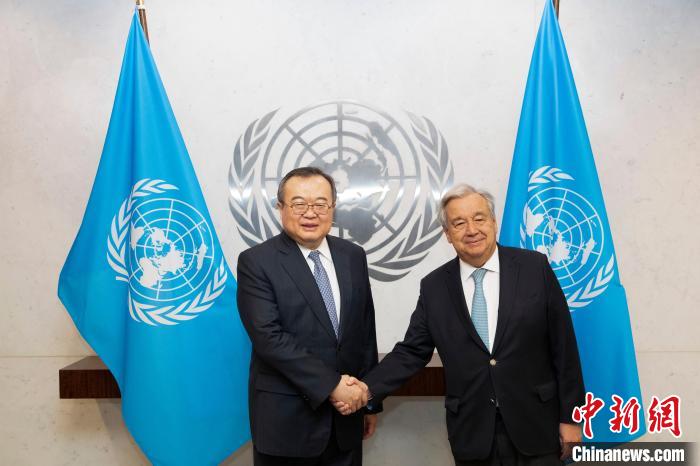 當?shù)貢r間1月9日,中共中央對外聯(lián)絡部部長劉建超在紐約聯(lián)合國總部會見聯(lián)合國秘書長古特雷斯,就中國同聯(lián)合國合作、全球文明倡議以及雙方共同關心的國際和地區(qū)問題交換看法。 中新社記者 廖攀 攝