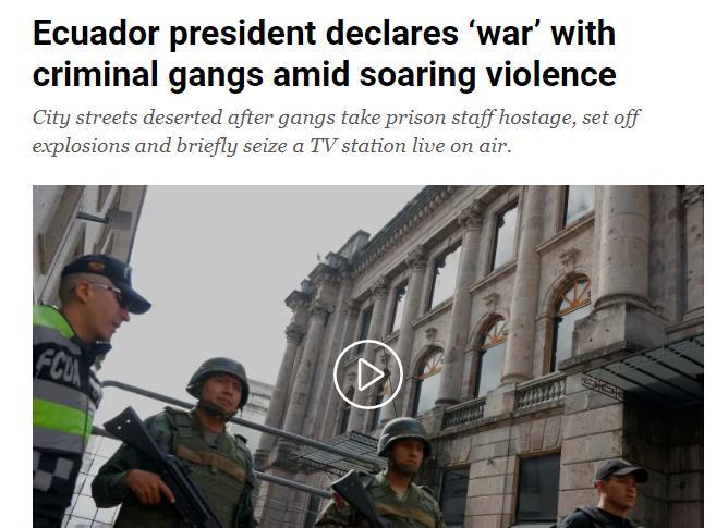 近來,該國(guó)各地發(fā)生了一系列暴力事件,造成至少10人喪生。此外,該國(guó)一家電視臺(tái)遭武裝人員闖入,多所監(jiān)獄發(fā)生騷亂,數(shù)名警察遭到綁架,“頭號(hào)通緝犯”、犯罪集團(tuán)“Los Choneros”頭目馬西亞斯則在獄中失蹤。