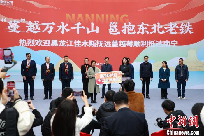 當(dāng)日,在以“‘蔓’越萬水千山、邕抱東北‘老鐵’”為主題的黑龍江蔓越莓接收儀式上,廣西文化旅游推廣大使、瑤族青年歌唱家陳春燕帶領(lǐng)演員們?yōu)閾徇h(yuǎn)客人送繡球、唱山歌、獻(xiàn)油茶,活動(dòng)現(xiàn)場(chǎng)暖意融融、笑語盈盈。