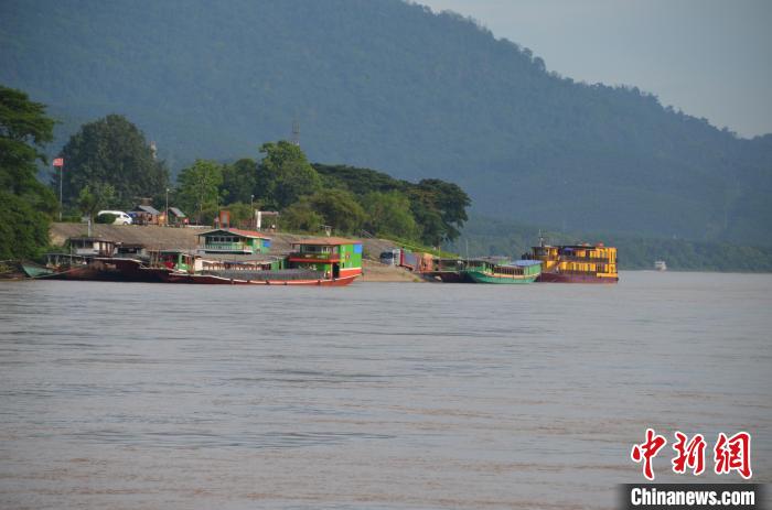 2023年6月28日,停泊在湄公河老撾一碼頭的各國貨船。中新社記者 繆超 攝