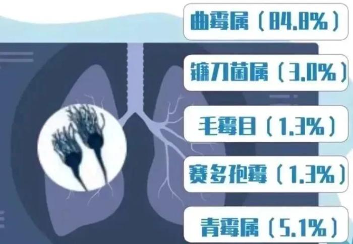 一項(xiàng)發(fā)表在《協(xié)和醫(yī)學(xué)雜志》上的我國(guó)霉菌感染流行病學(xué)分析的多中心回顧性研究顯示,以曲霉屬引起的感染占比最高為84.8%,其次是鐮刀菌屬、毛霉目和賽多孢霉等霉菌造成的感染,在霉菌引起的常見(jiàn)感染性疾病中以下呼吸道、耳部、眼部和皮膚感染較多見(jiàn)。