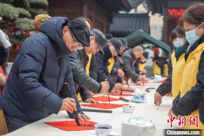 新春送福活動(dòng)現(xiàn)場?!∩虾S穹鸲U寺供圖