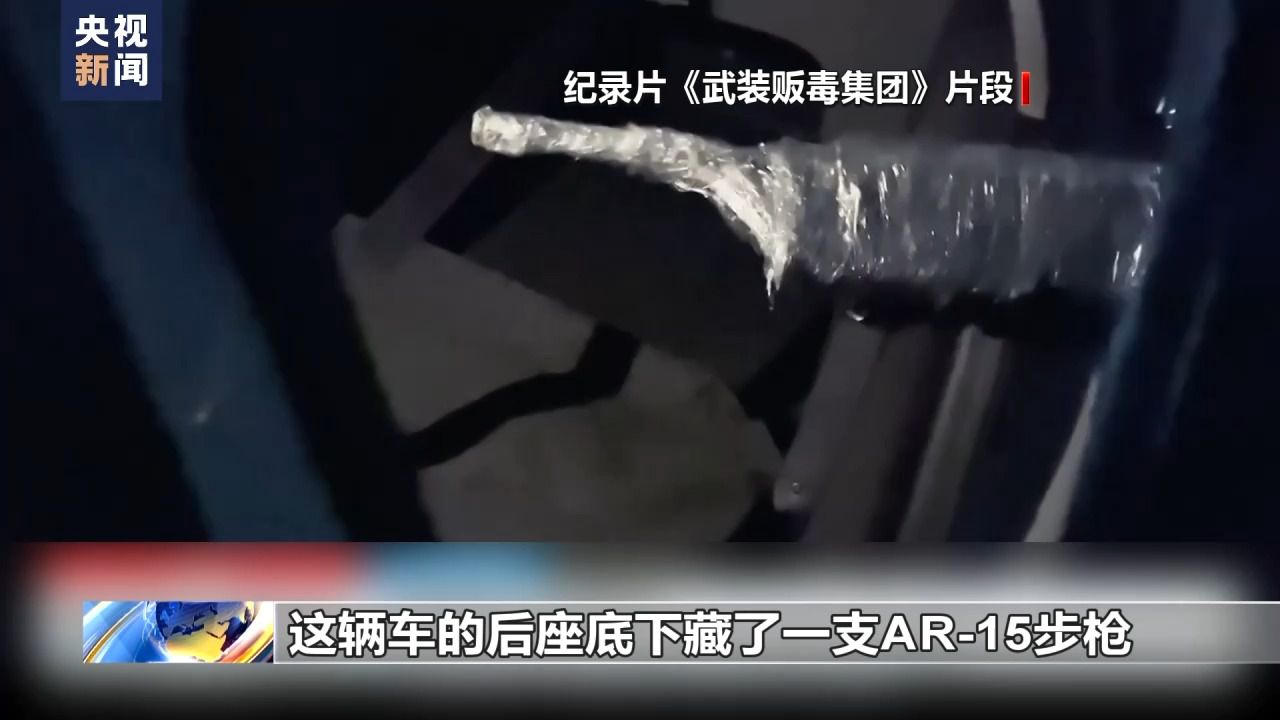 紀(jì)錄片《武裝販毒集團》片段:我剛從汽車油箱里取出這支用塑料布包著的9毫米口徑手槍,還在往下淌汽油呢。這輛車的后座底下藏了一支AR-15步槍。