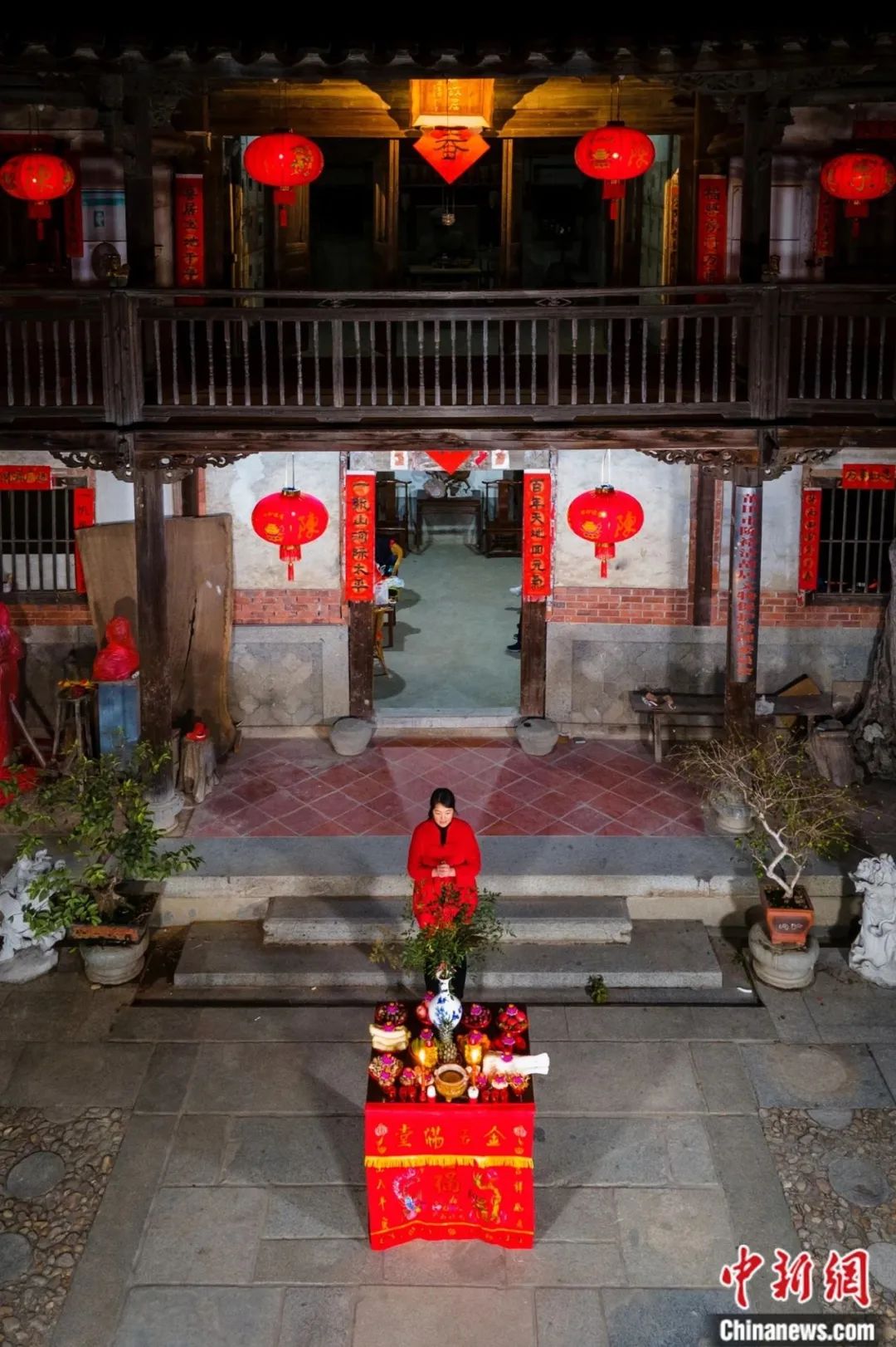 商戶百姓在門口擺上貢品