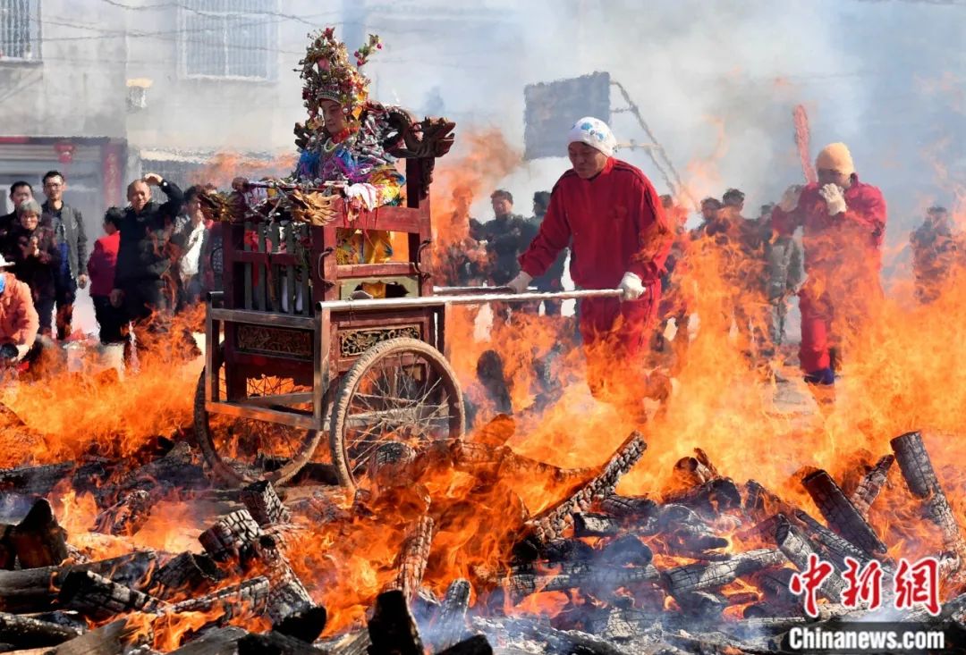 赤腳跨儺火。中新社記者 呂明 攝