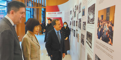 1月6日,弗吉尼亞大學代表團在清華大學參觀中美“乒乓外交”圖片展。