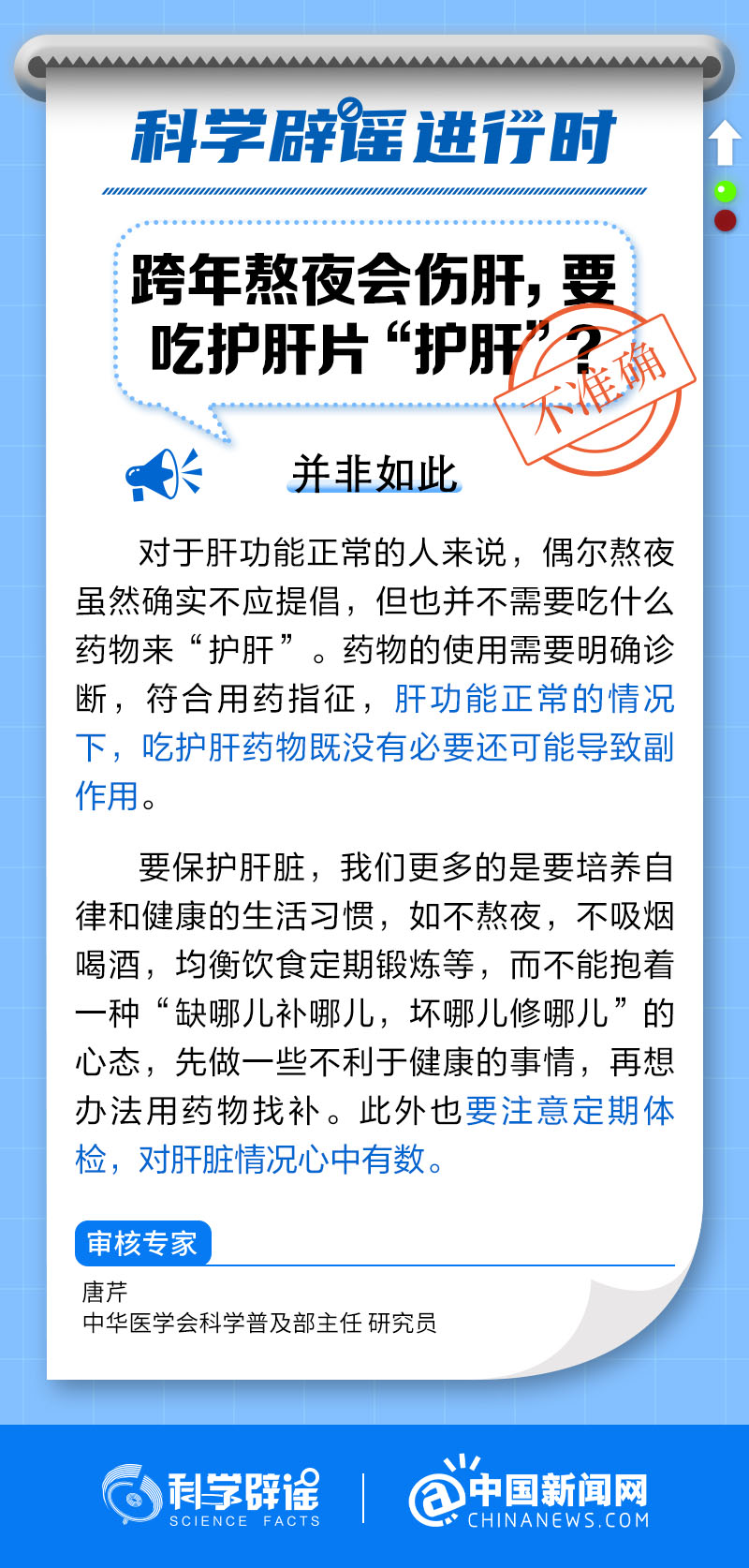 中新網(wǎng)1月30日電 對于肝功能正常的人來說,偶爾熬夜不需要吃什么藥物來“護肝”。藥物的使用需要明確診斷,符合用藥指征,肝功能正常的情況下,吃護肝藥物既沒有必要還可能導致副作用。要保護肝臟,我們更多的是要培養(yǎng)自律和健康的生活習慣,如不熬夜、不吸煙喝酒、均衡飲食、定期鍛煉等。(來源:@科學辟謠 中國新聞網(wǎng)微博 )